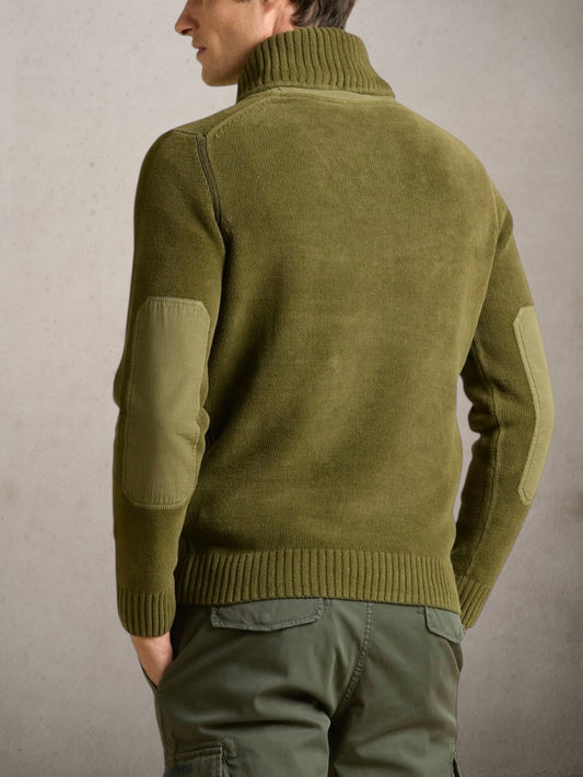 Chenille Sweater With Chest Pocke Dark Olive