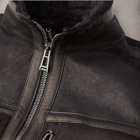 V Racer Jacket Cheviot Leather Black
