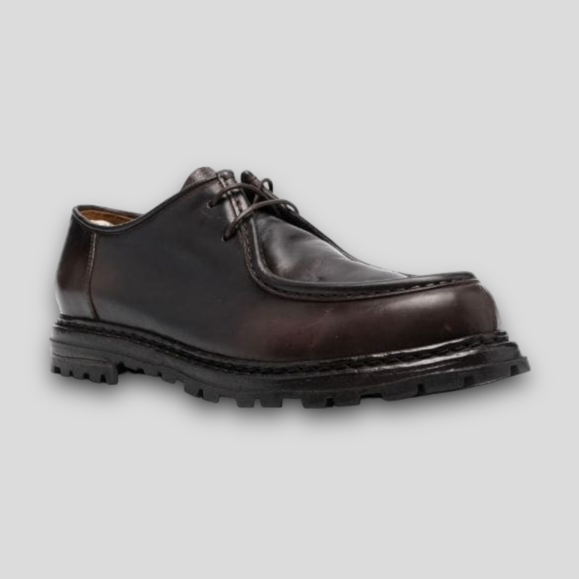 Versatile and comfortable Anatomia artisan ankle boots catch the eye thanks to the airbrushed finish in dark brown shades which makes each pair unique and special. They are crafted from soft leather and feature an almond toe front lace-up our signature grosgrain heel pull tab and a leather sole with a low stacked heel and black rubber inserts.