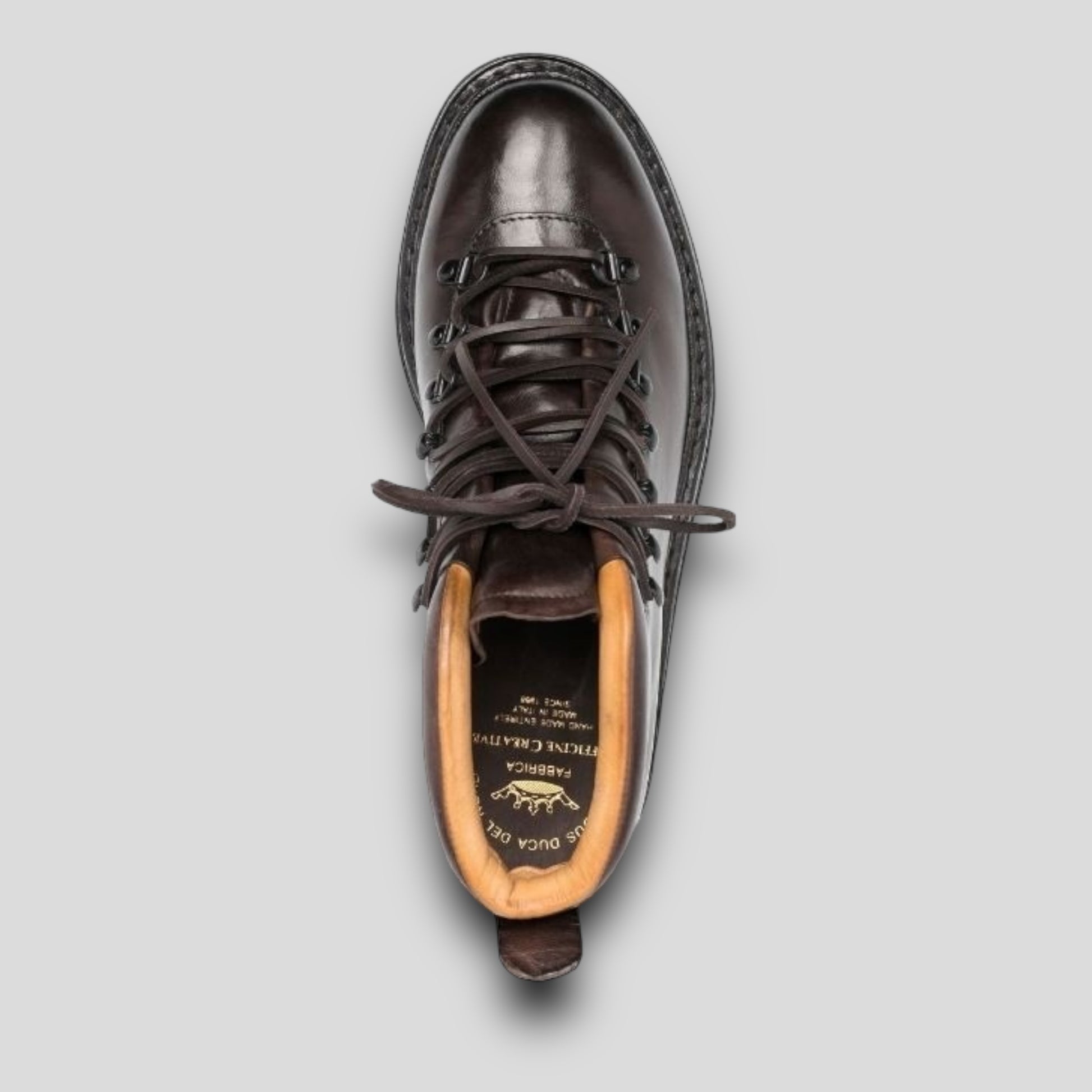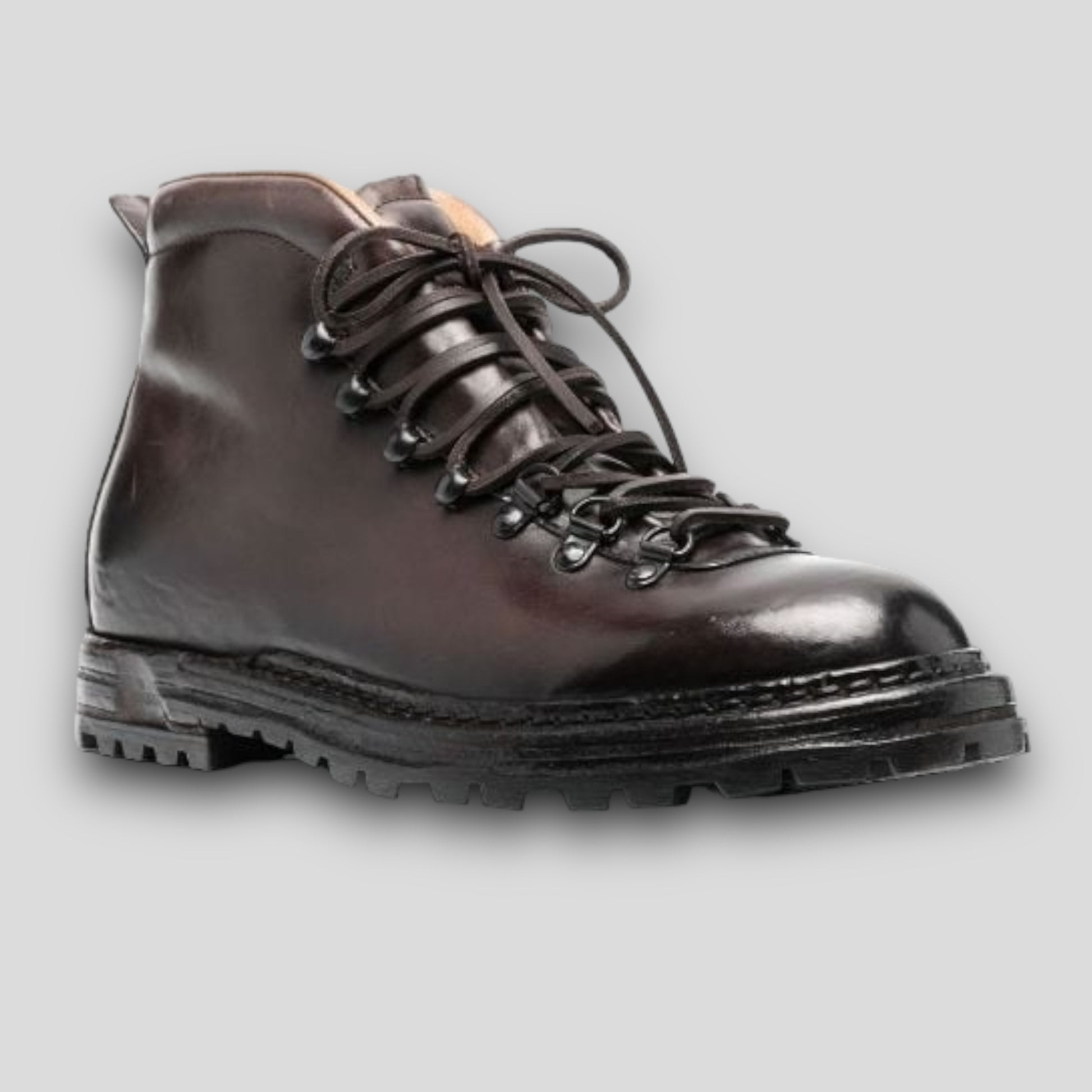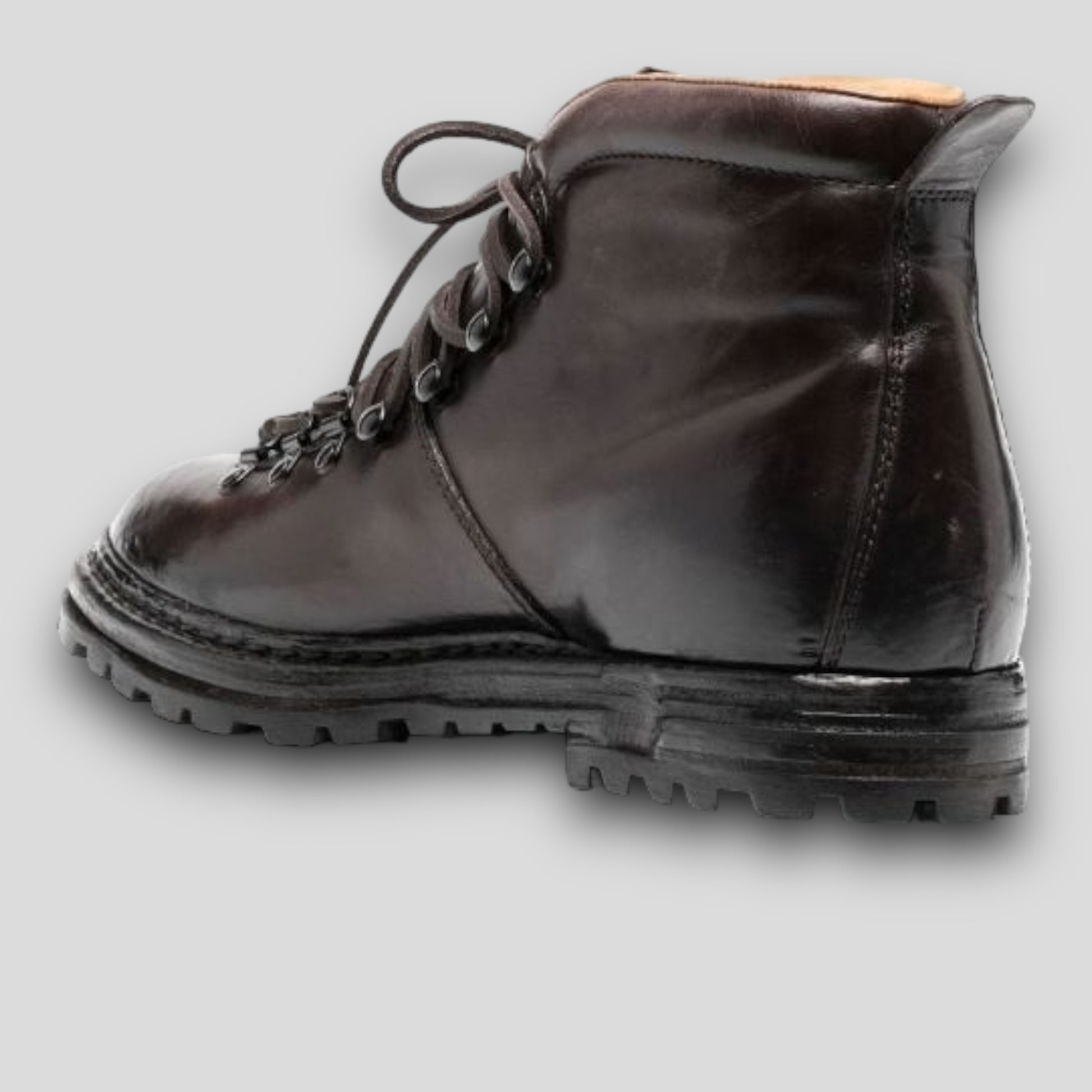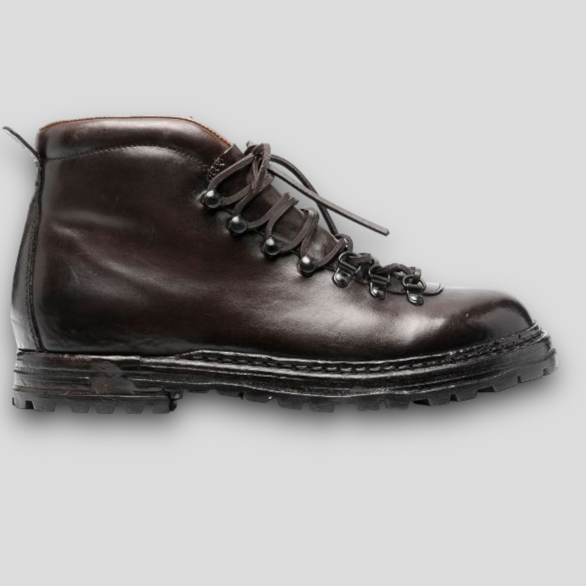 Artik 001 boots are a nod to retro hiking styles – just take the padded collars and lacing system as proof. They’re made from brown leather in our Marche manufacturer and set on flexible lugged soles.