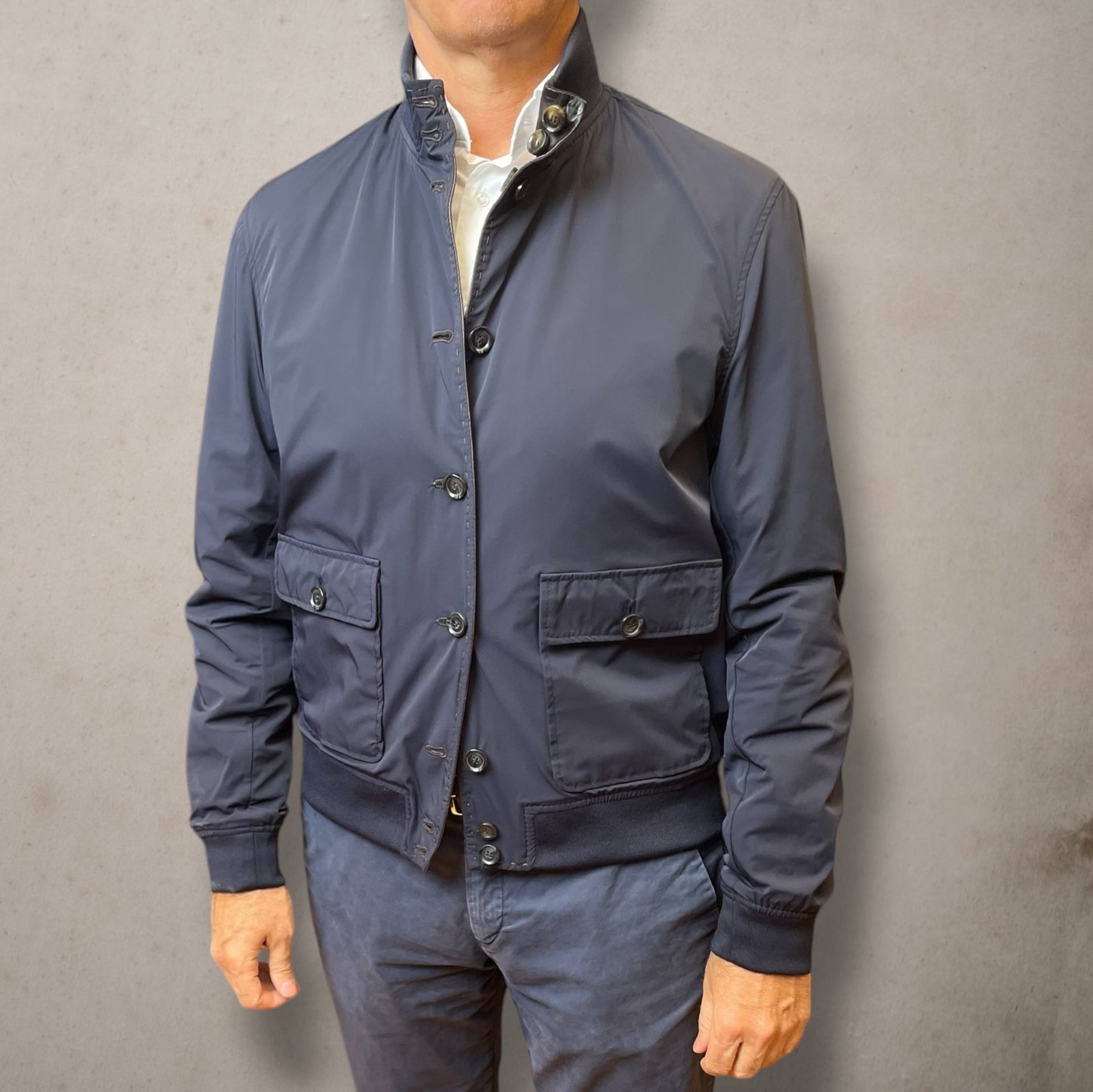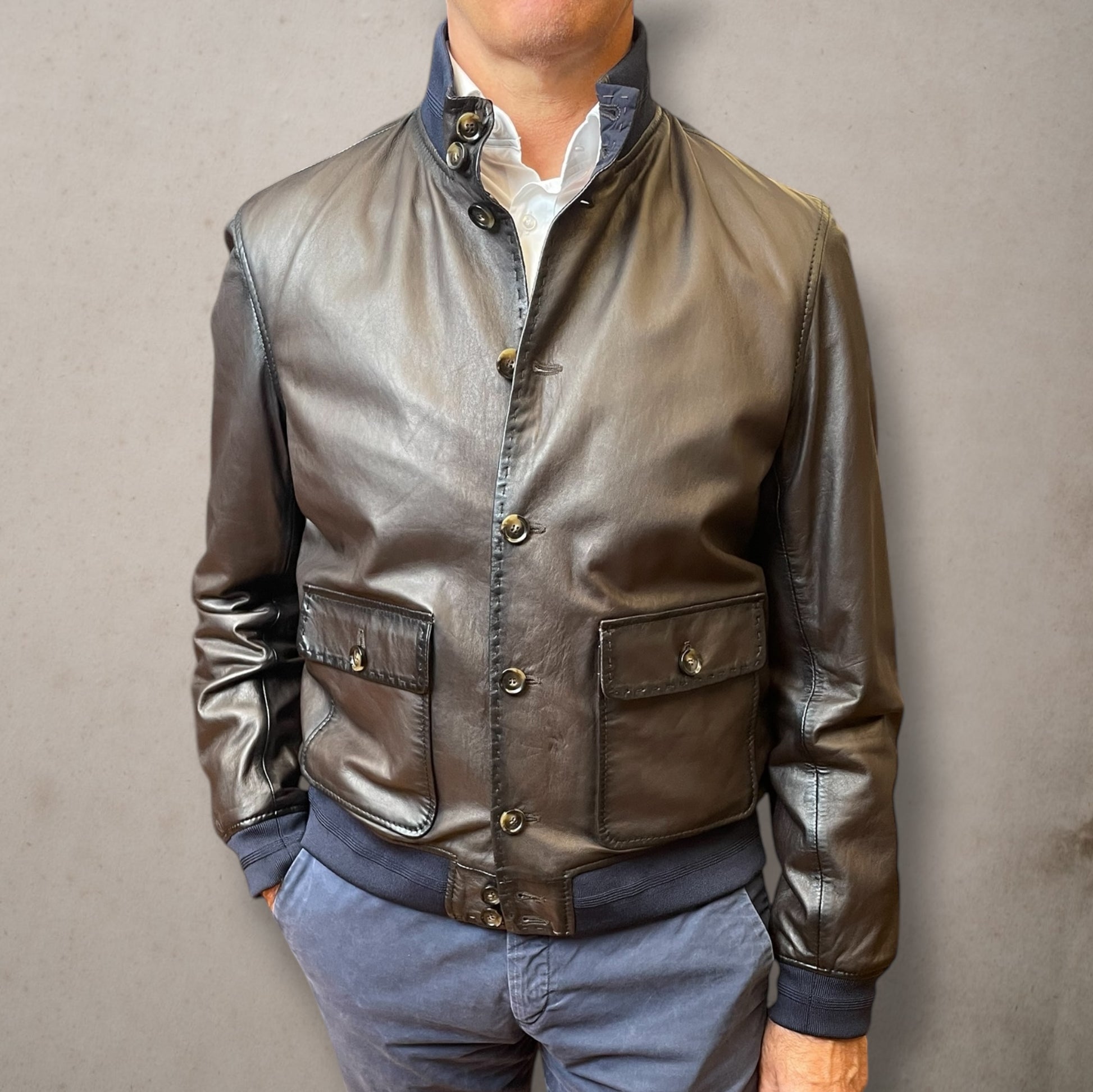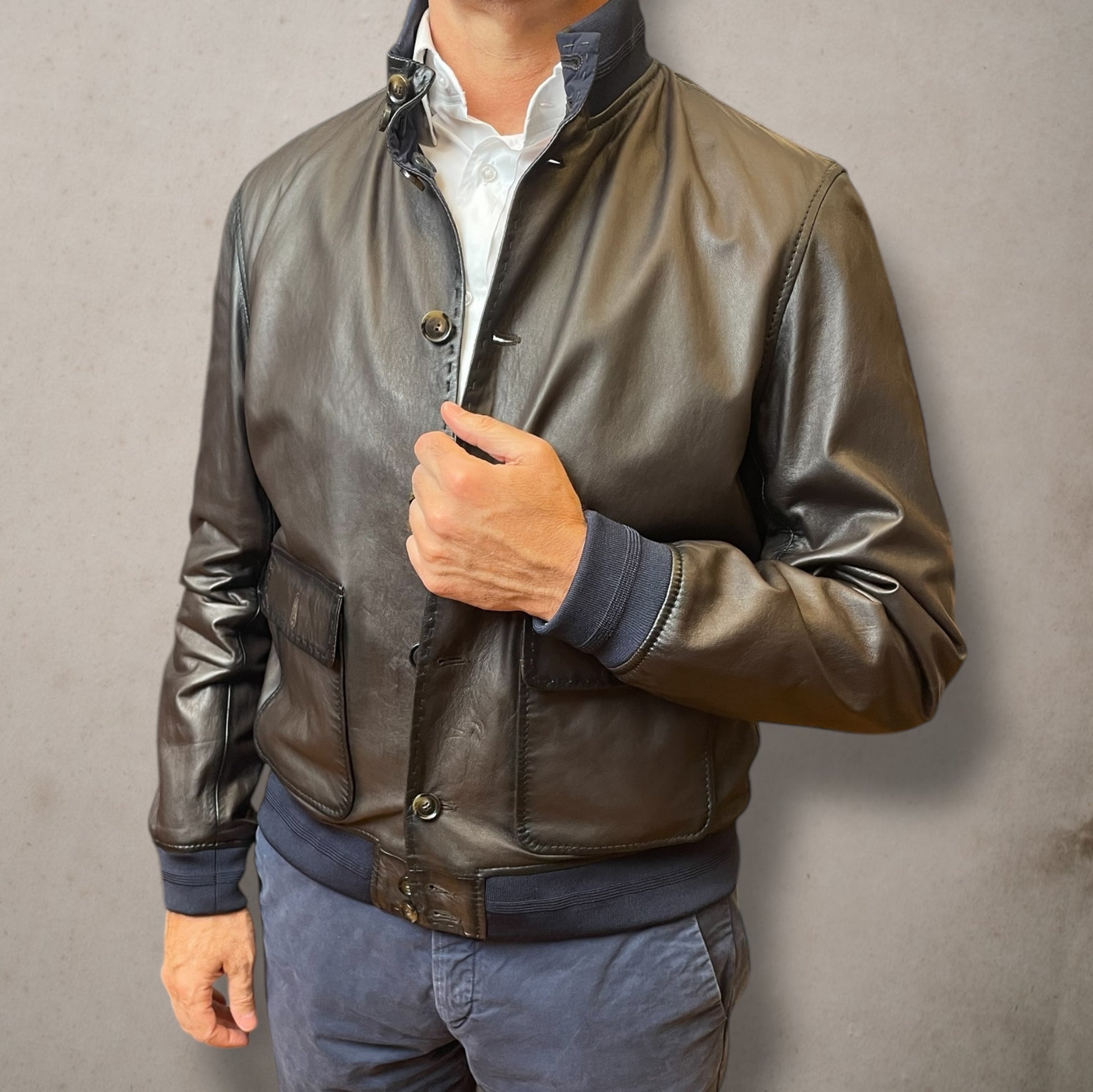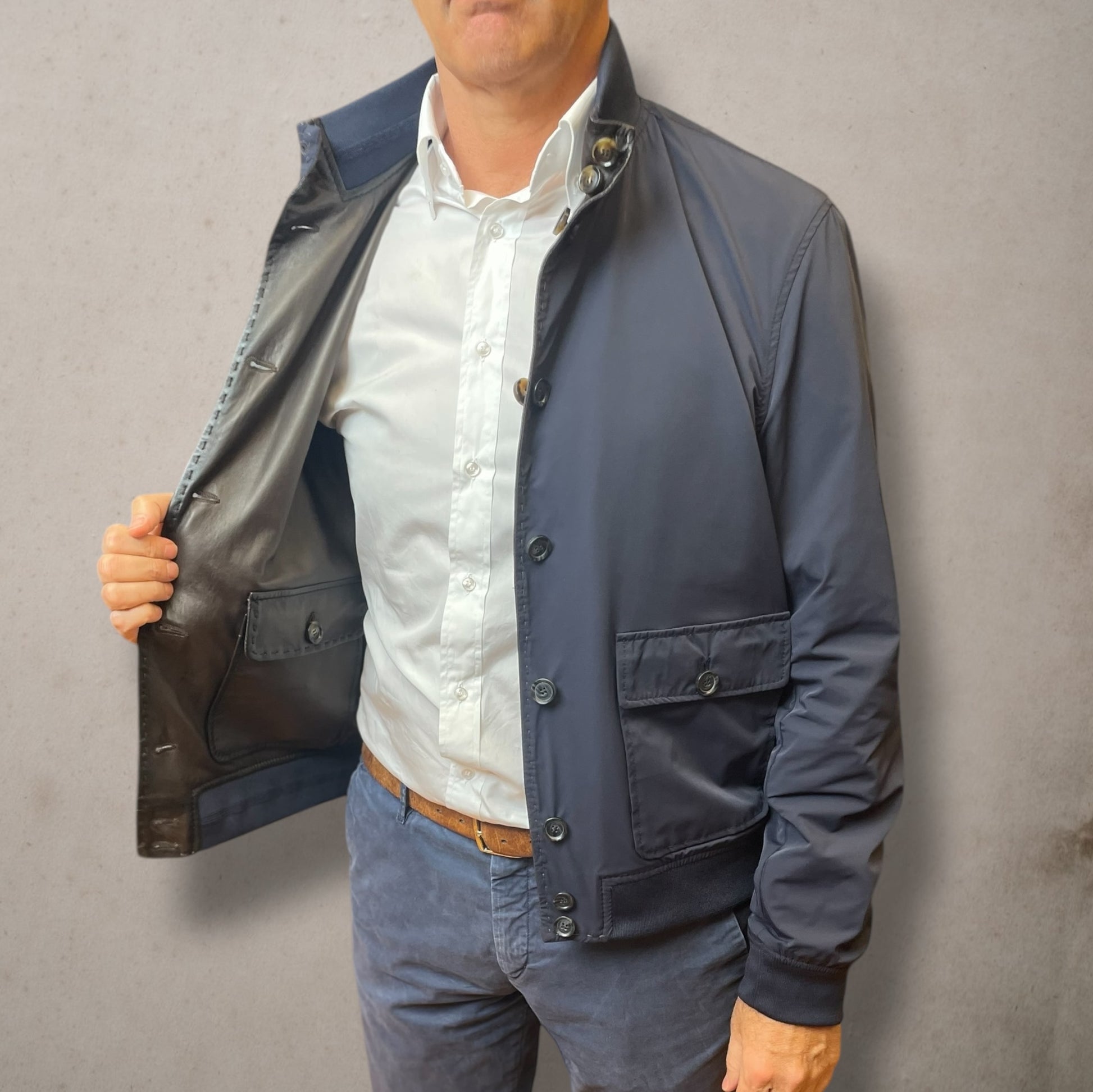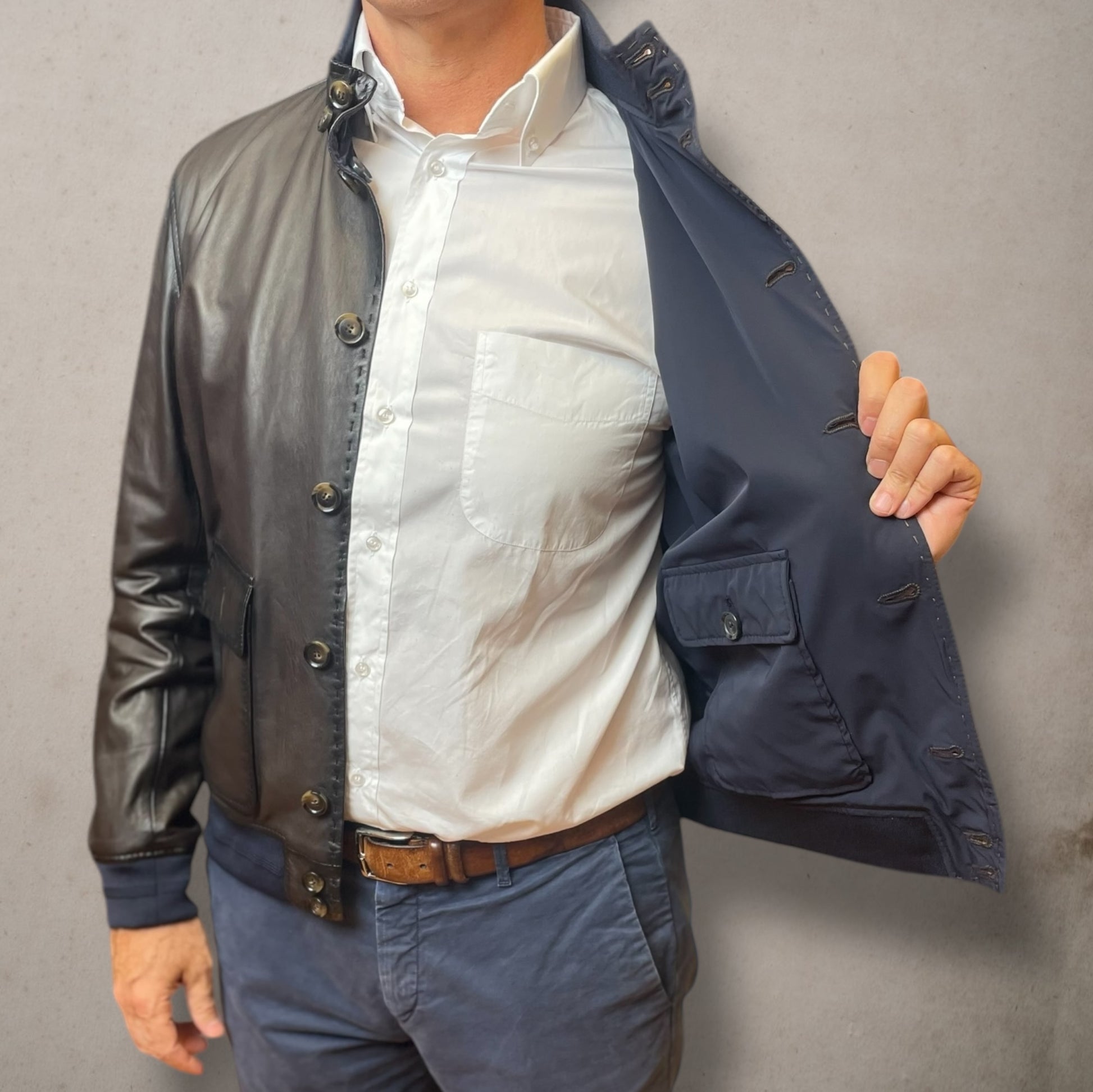 Brown Reversible Stanton Leather Jacket Navy Fabric