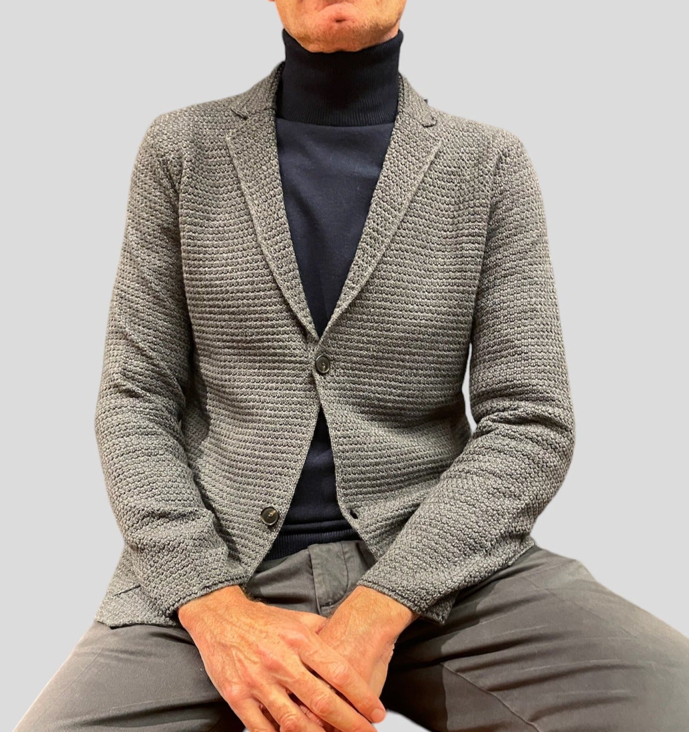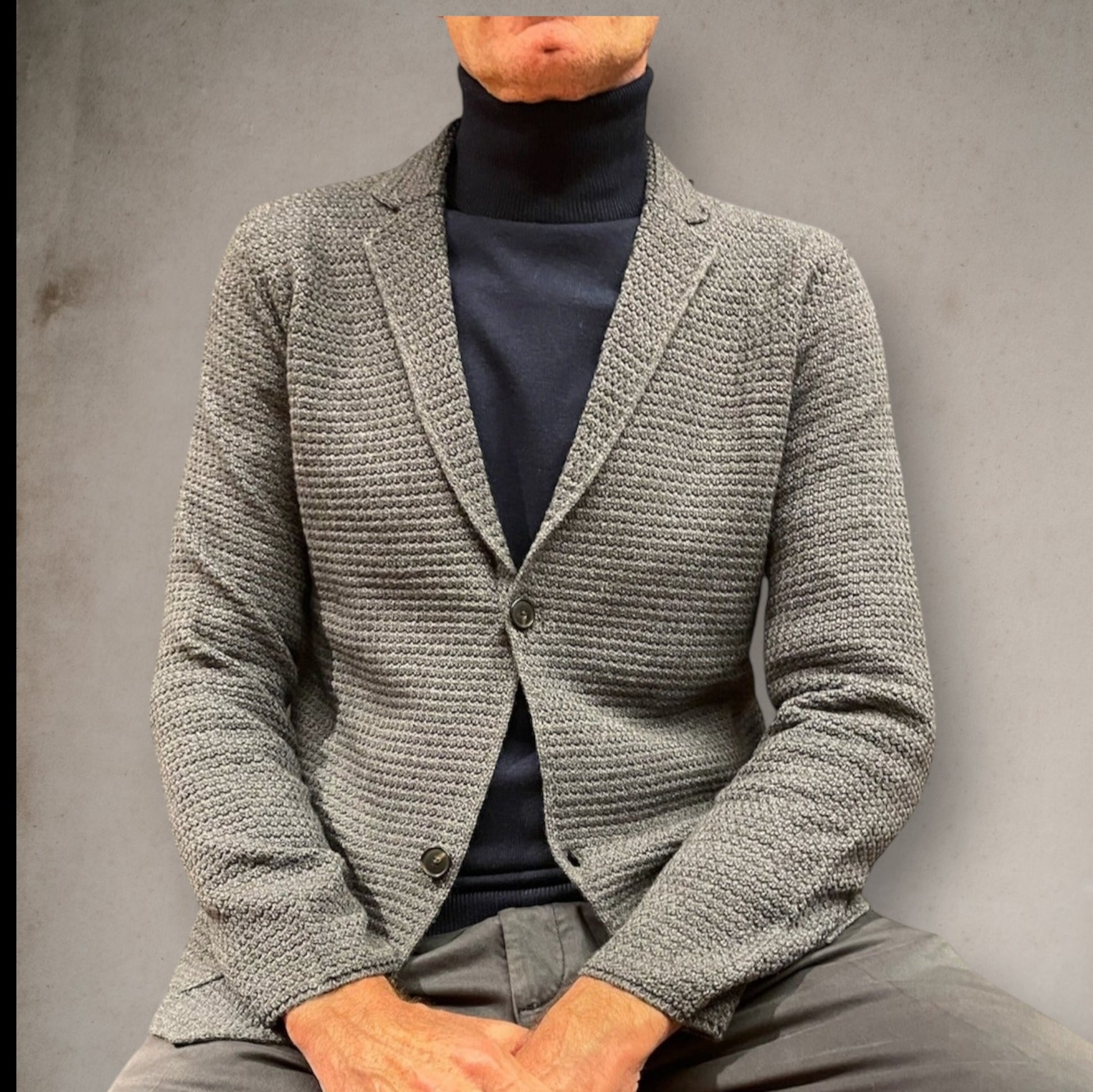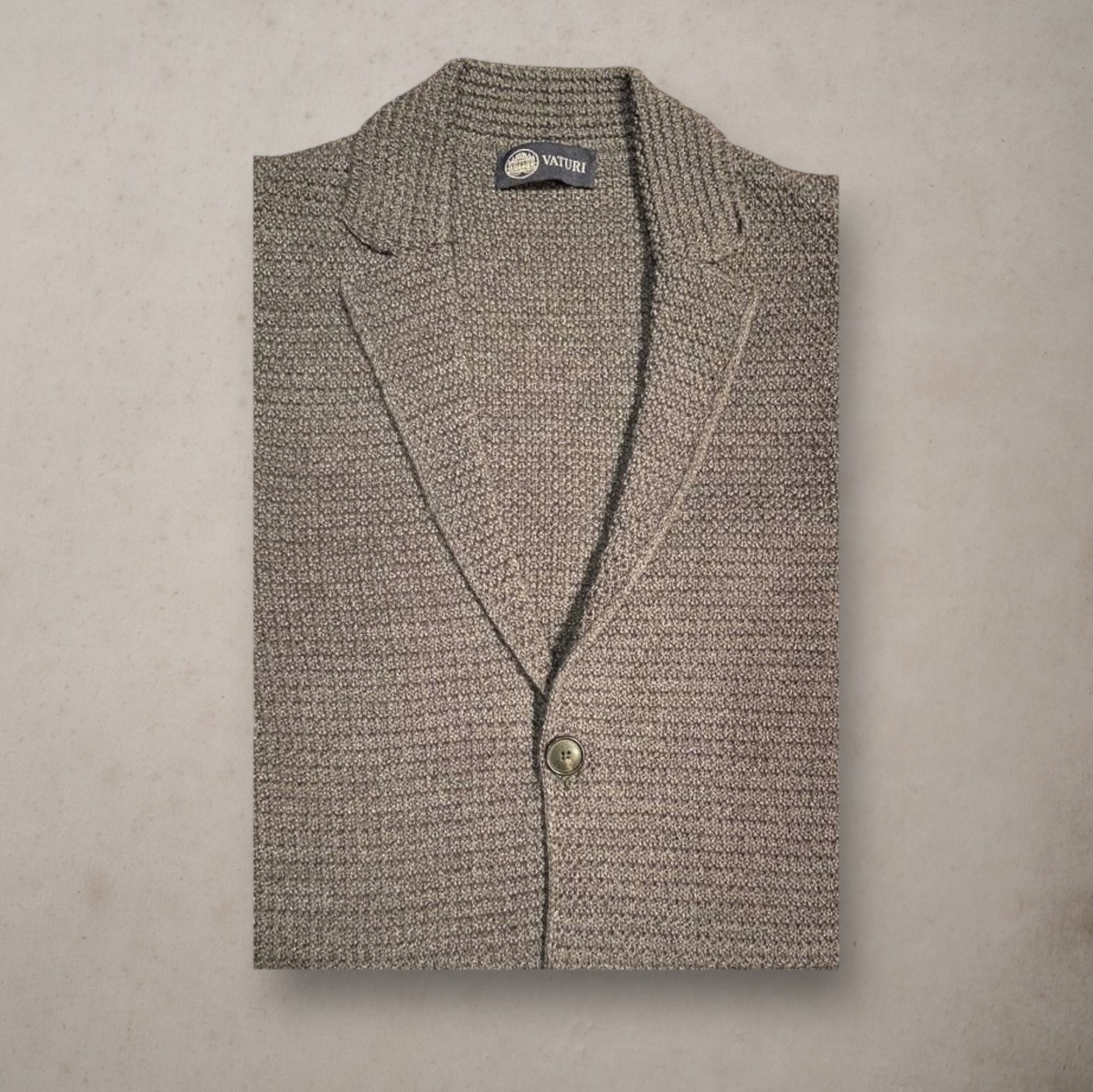 This elegant knit Cardigan Blazer features refined buttons and long sleeves, with front pockets, cuffs,