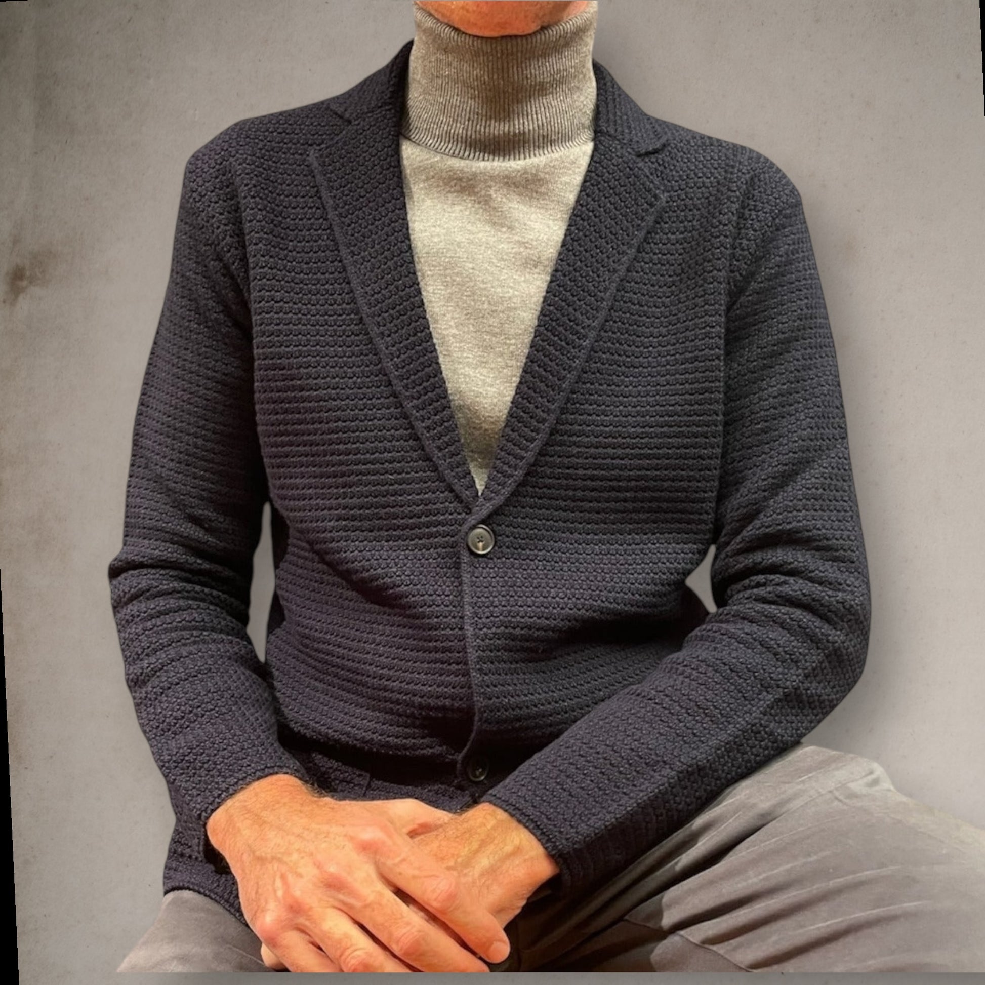 This elegant knit Cardigan Blazer features refined buttons and long sleeves, with front pockets