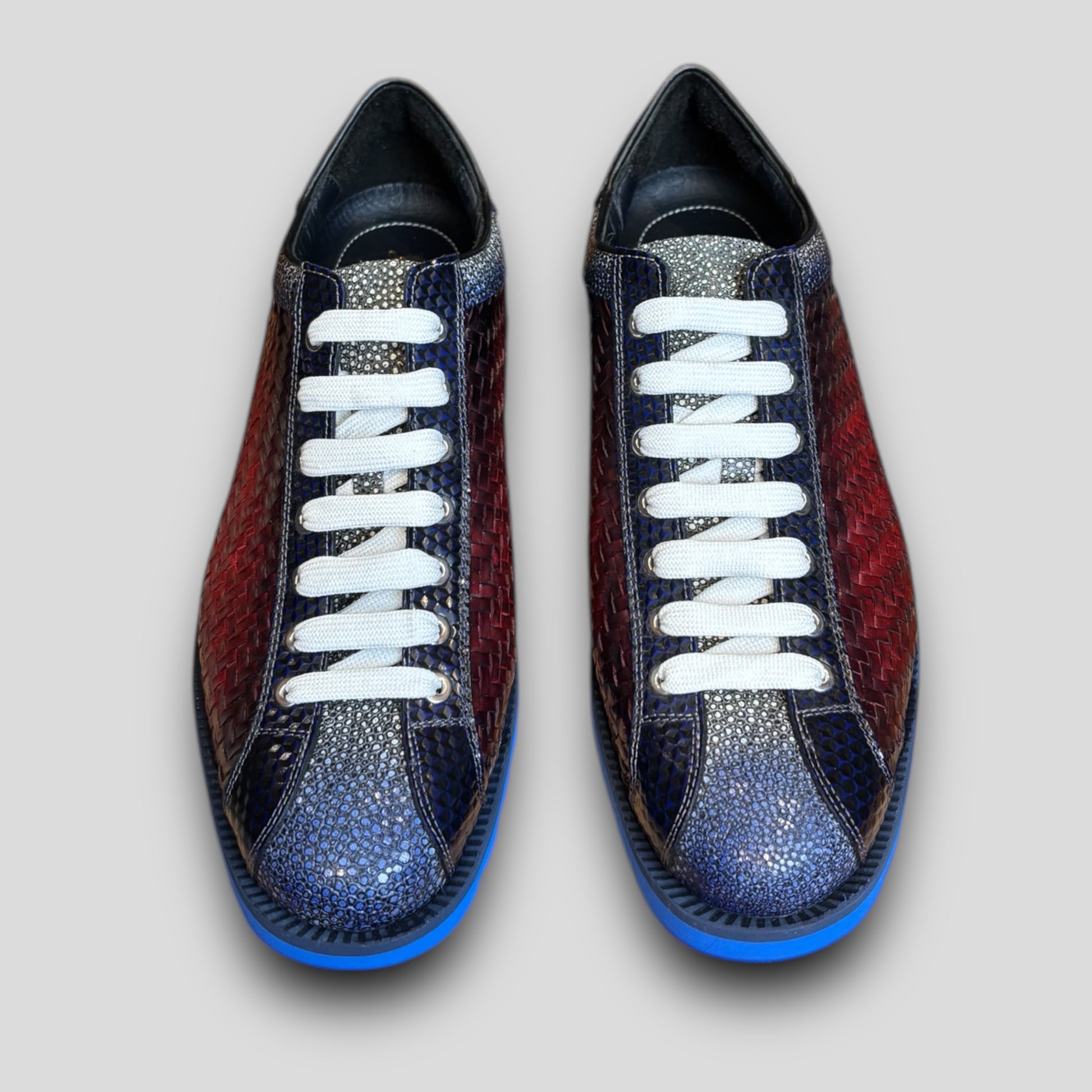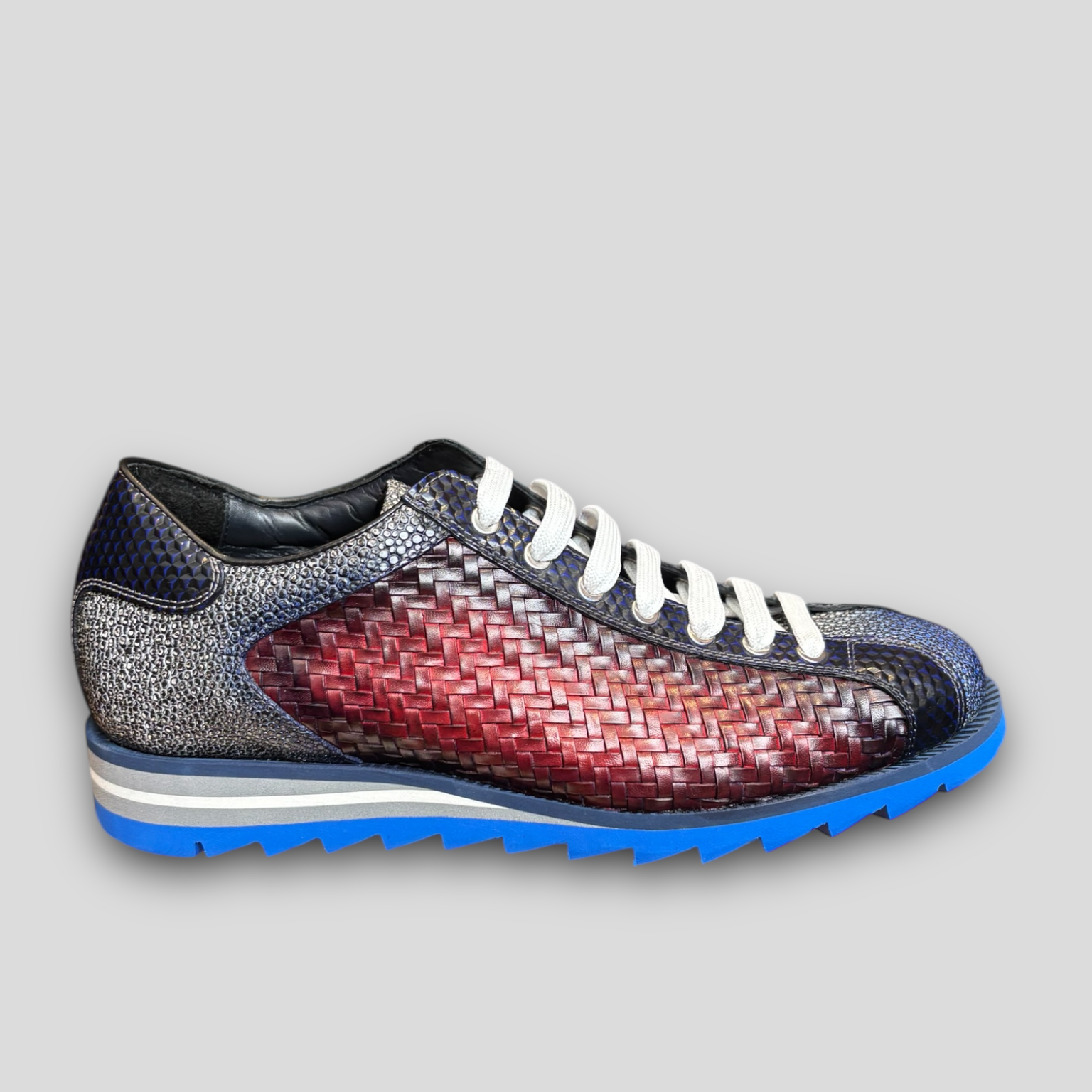 The Venezia sneaker is crafted from genuine calf leather, meticulously hand-painted. Adding to its allure, the sneaker features a shoe tongue and heel counter crafted from luxurious python leather, elevating its sophistication and style.