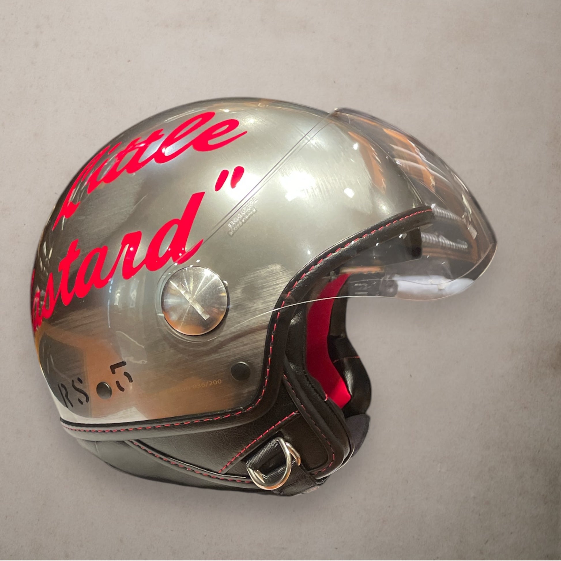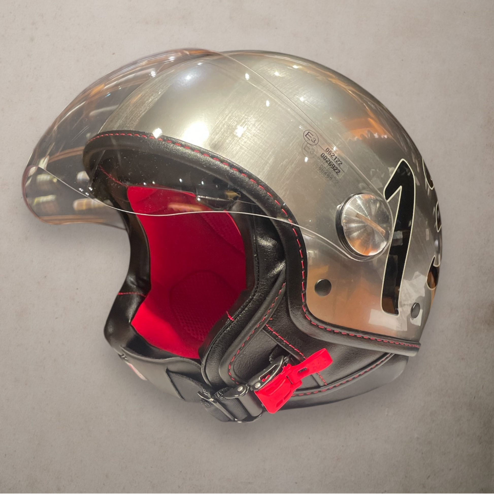 The Little Bastard Vintage Shiny Helmet is practical to use thanks to the quick release strap and the double visor, the anti-air