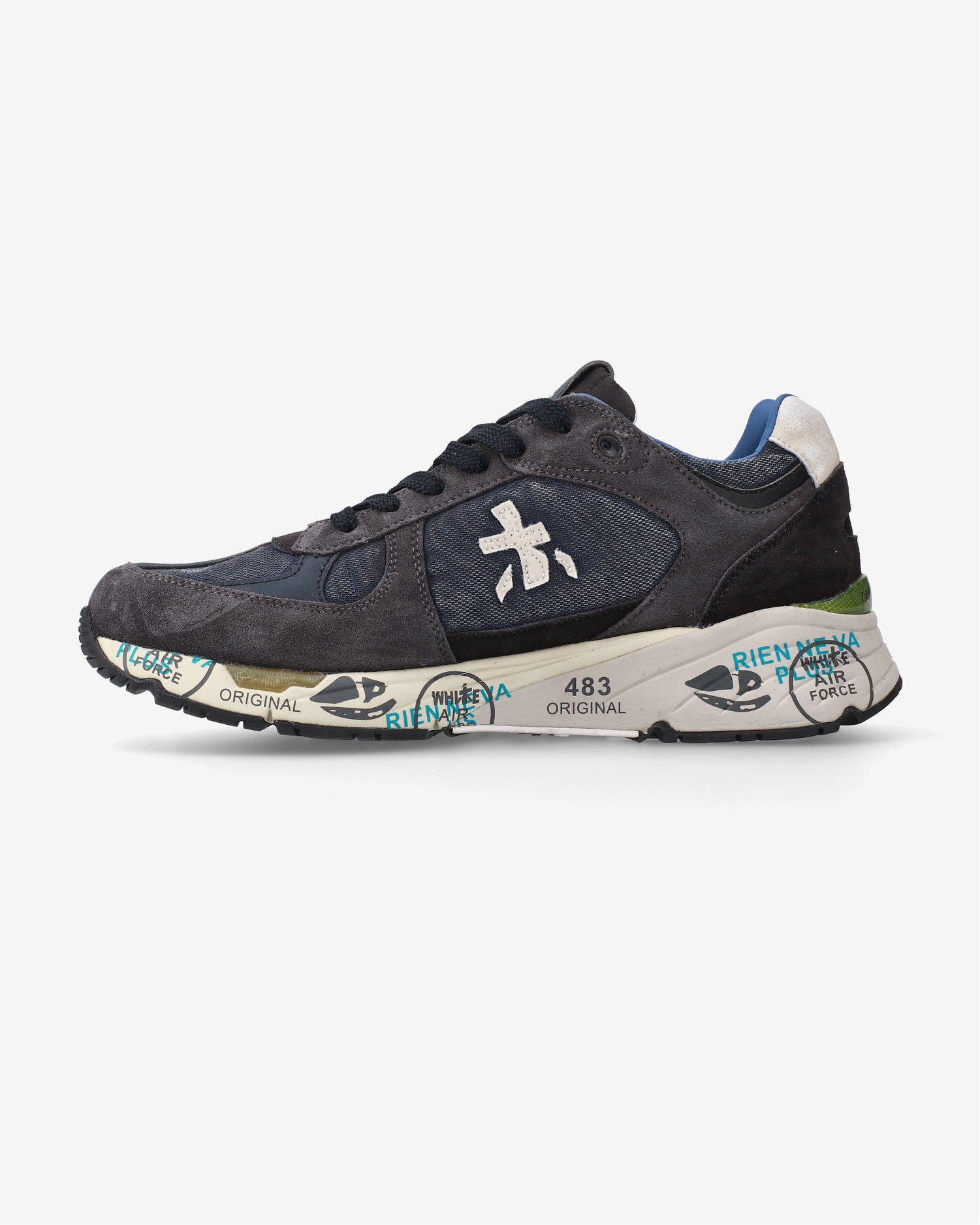 The look is enriched by the unmistakable tone-on-tone Premiata logo.