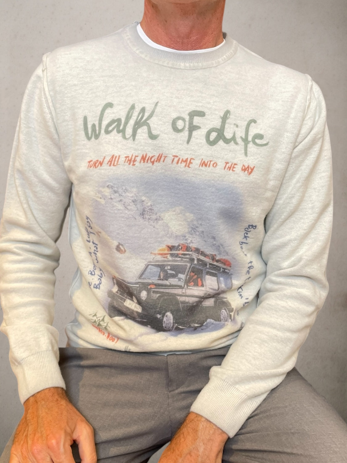The sweater stands out for its refined vintage finish, achieved through an exclusive spray-dyeing technique that adds depth and character to the piece. Premium details include ribbed collar, cuffs, and hem, all designed to ensure a flawless fit. Exposed seams along the sleeves and shoulders introduce a touch of effortless modernity, without compromising the garment's overall elegance. The slim fit, enhanced by sophisticated elbow patches, gives the piece a sleek and contemporary style.